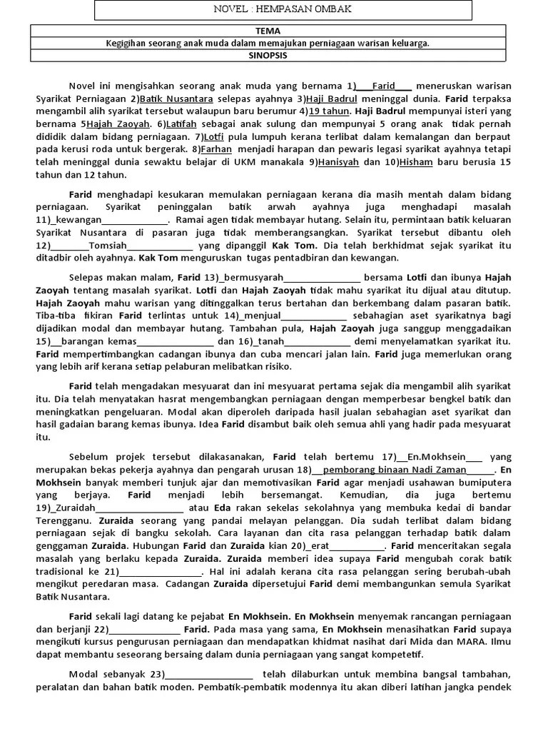 Pengajaran novel hempasan ombak sinopsis novel ini mengisahkan seorang anak yang bernama farid meneruskan warisan syarikat perniagaan batik .